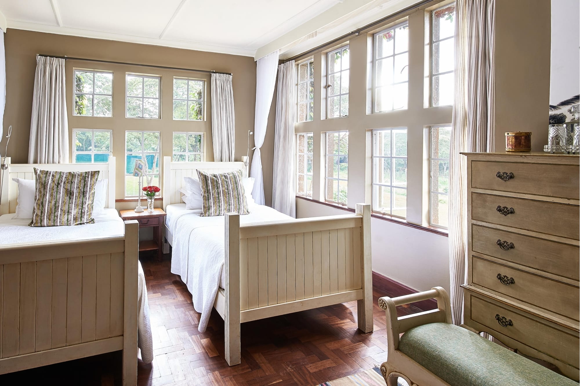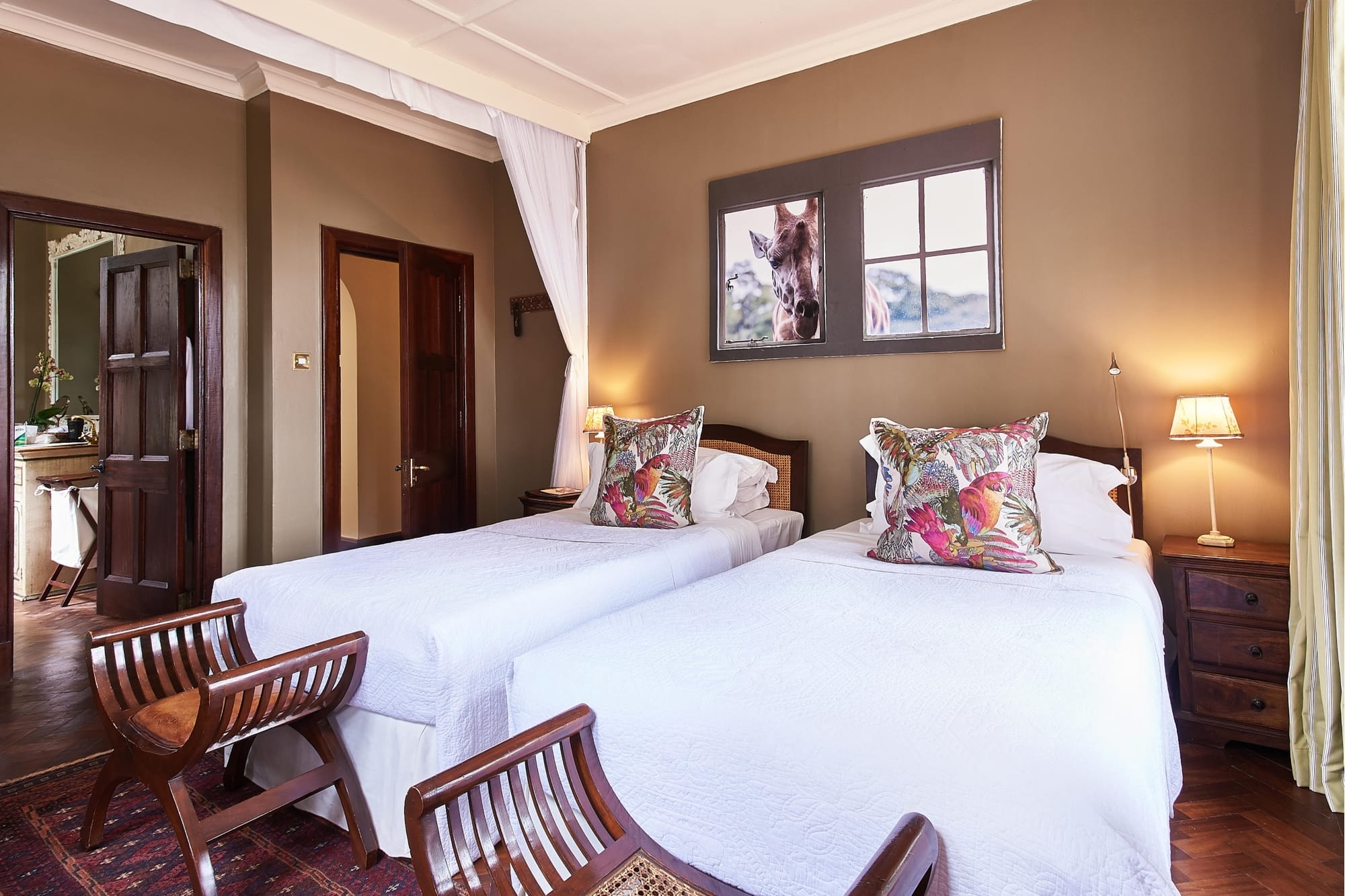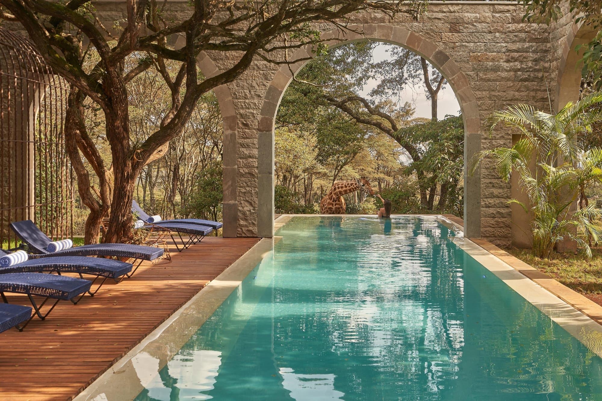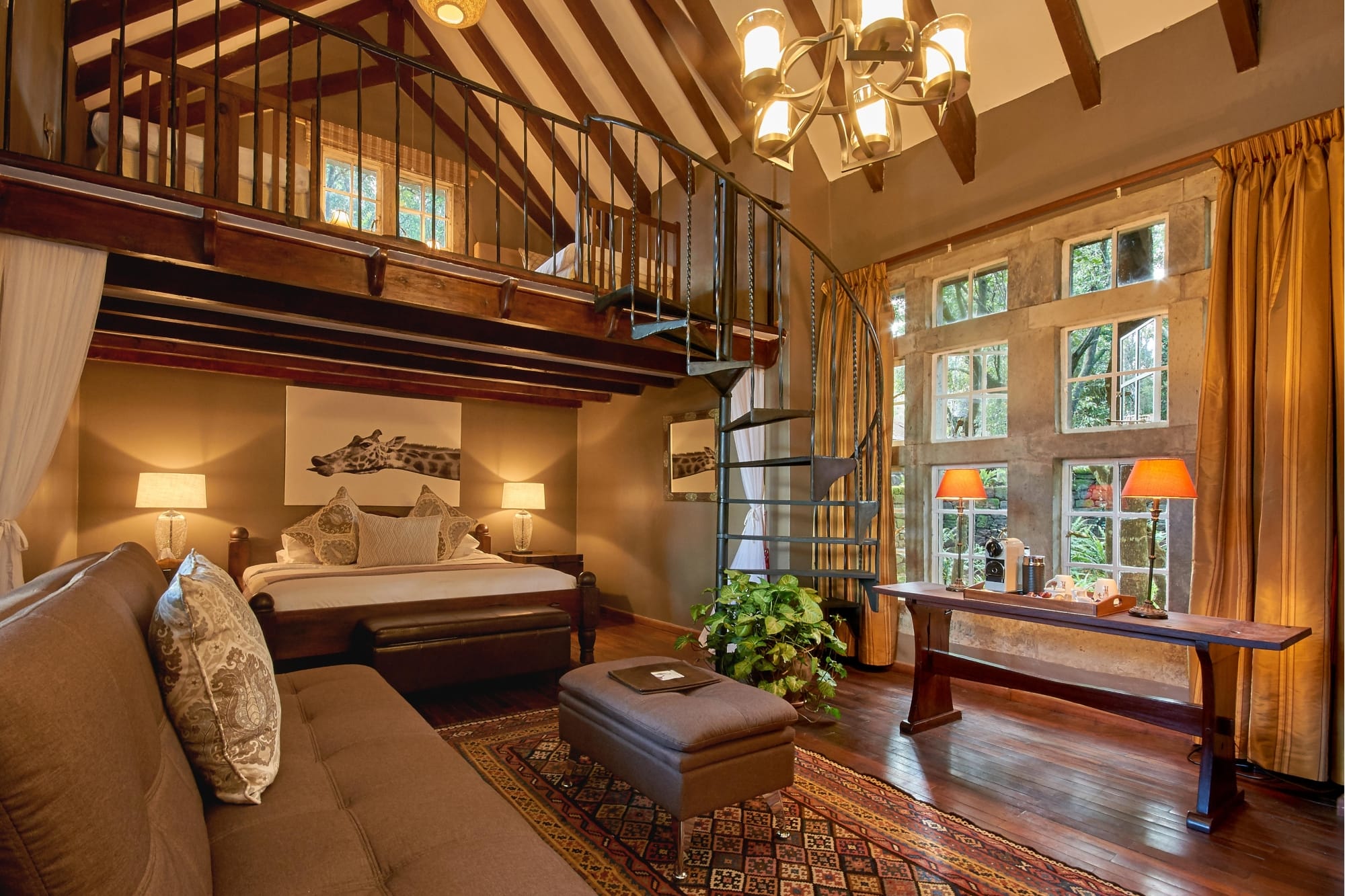 Giraffe Manor’s architectural style pays homage to its historical roots, mirroring a Scottish hunting lodge. This style extends to its two main structures: the original Giraffe Manor or Historic Manor, and the Garden Manor, a complementary annex. Both buildings offer a blend of historical charm and modern amenities, ensuring a comfortable and memorable stay for all guests. The transformation from a private residence to a boutique hotel has been executed with a keen eye for preserving its country house ambiance. The original charm and elegance of the manor have been meticulously maintained, offering a window into Nairobi’s historical past. This careful preservation is evident in every detail, from the manor’s decor to the way in which the giraffes are integrated into the guest experience.